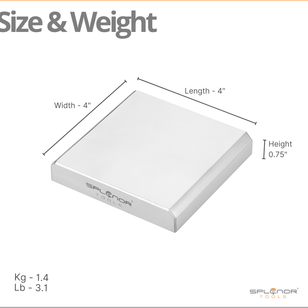 - Bench block dimensions are 4" long x 4" wide x ¾" thick
