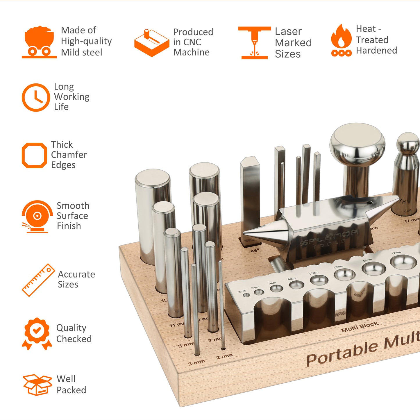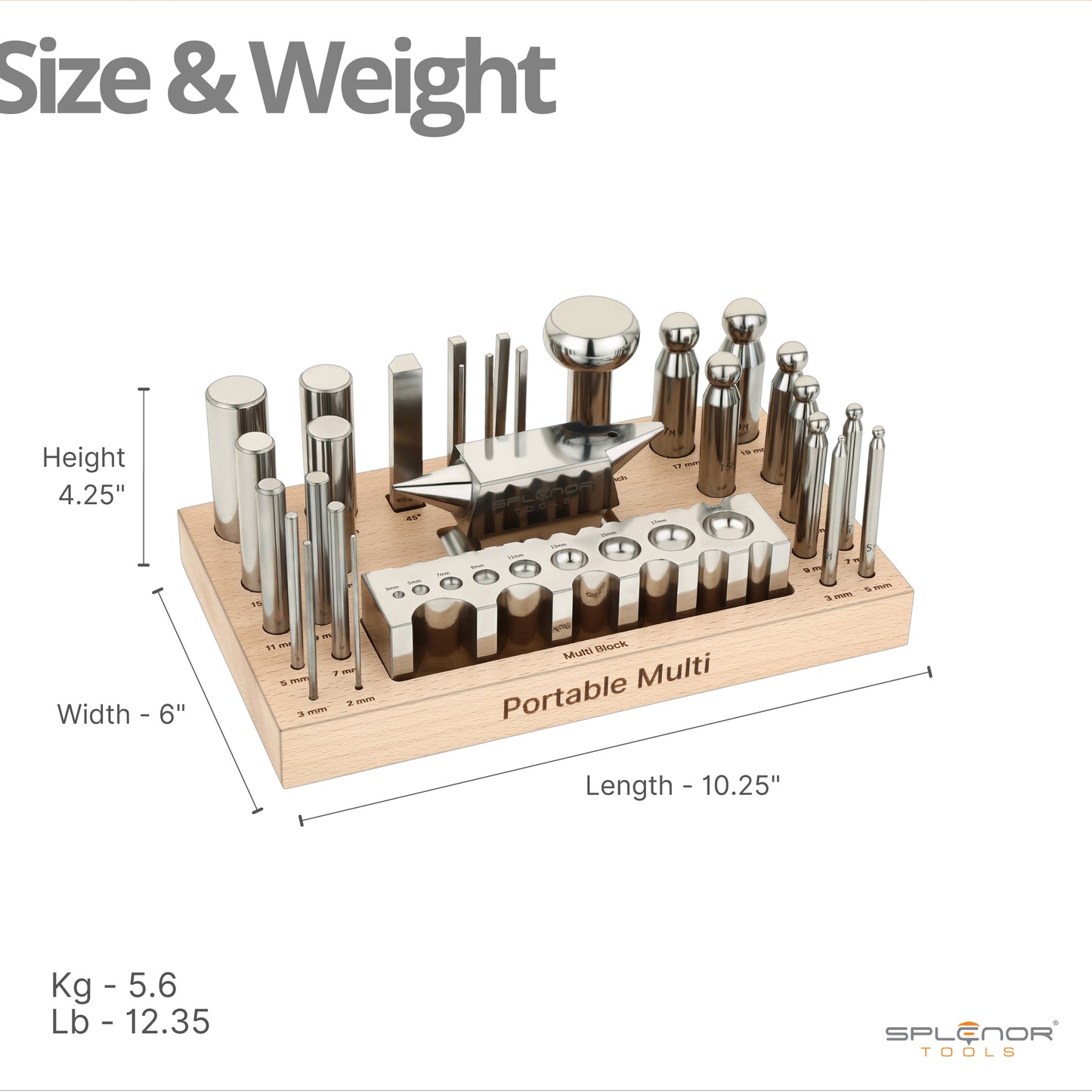 - This kit includes a 6" Master forming block, 9 Dapping punch set, 16 Swage punch set, Oval punch, Horn Anvil, and Wooden Stand