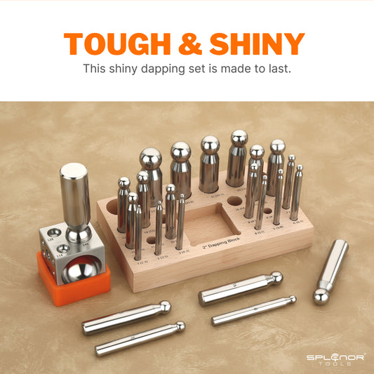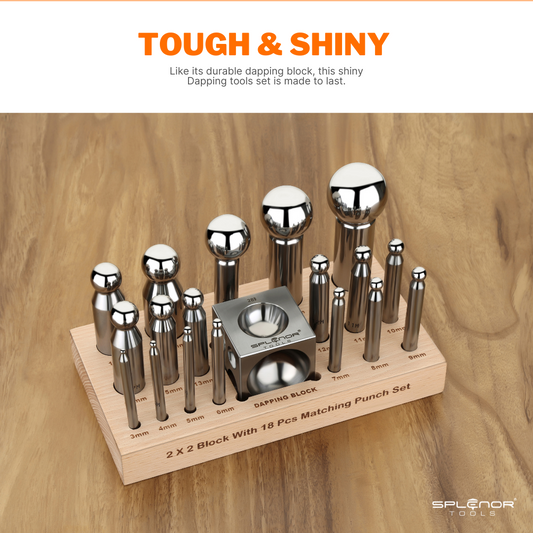 2" Square Dapping Block with 18 Dapping Punch Set