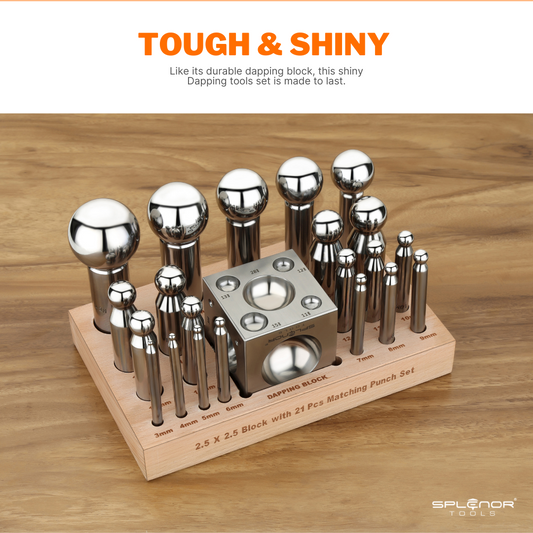 2.5" Square Dapping Block with 21 Dapping Punch Set